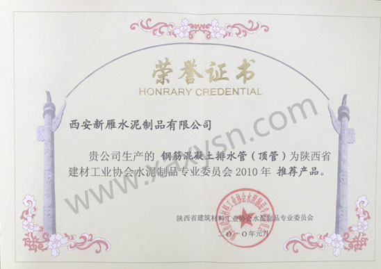 生產(chǎn)的鋼筋混泥土排水管(頂管)為陜西省建材工業(yè)協(xié)會水泥制品專業(yè)委員會會員2010年推薦產(chǎn)品