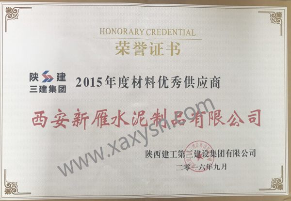 陜建三集團2015年度材料優(yōu)秀供應商